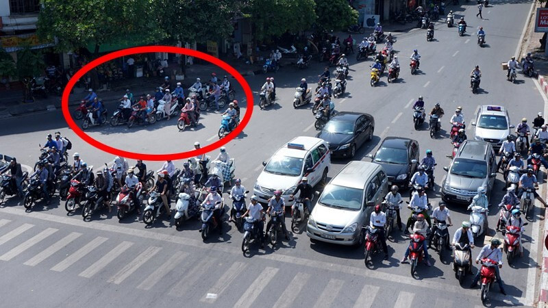 Dừng xe máy ở bóng râm để tránh nắng khi đèn đỏ có bị phạt không?
