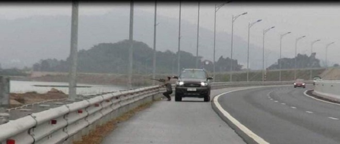 Trưa 13/3, tại Km05, cao tốc Hạ Long- Hải Phòng (hướng Hạ Long đi Hải Phòng), người đàn ông khoảng hơn 40 tuổi đi ô tô bán tải dừng xe trên cao tốc, lấy súng bắn chim.
