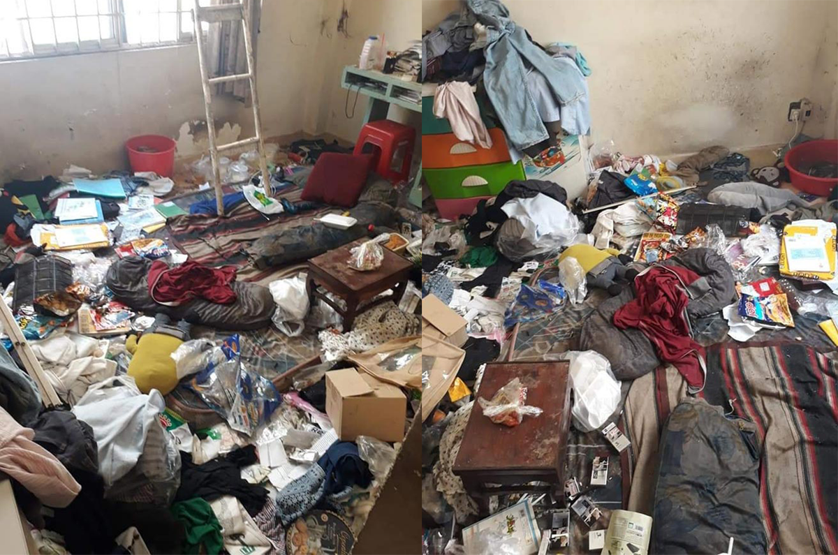 Nhìn loạt ảnh chụp hiện trạng căn phòng, có lẽ ai nấy đều hiểu tại sao thợ sửa điều hòa lại giật mình kinh hãi đến vậy. Căn phòng nhỏ hơn chục mét vuông nhưng mọi thứ lộn xộn đến khó tưởng tượng. Từ bàn ghế cho đến nền nhà ngổn ngang quần áo, sách vở, rác rưởi, thức ăn thừa… Căn phòng bừa bộn đến mức không còn chỗ để bước chân vào.
