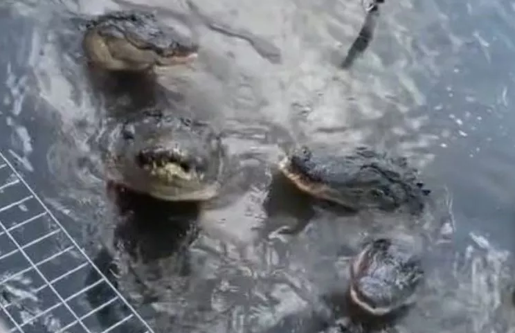 Đàn cá sấu đồng loạt hướng về phía giọng nói như thể chúng đang phản ứng lại lời nhận xét đó.