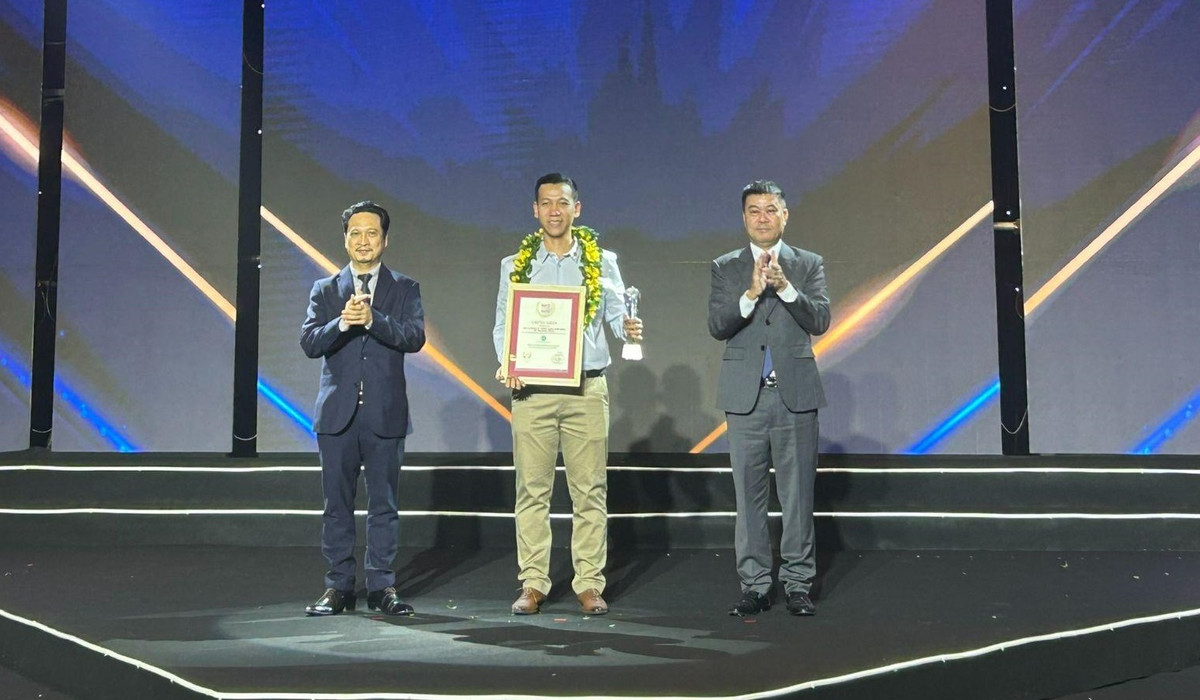 Đại diện Công ty Dược phẩm Hoa Linh nhận giải thưởng Top 5 Công ty đông dược Việt Nam uy tín năm 2023.