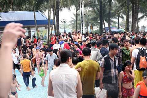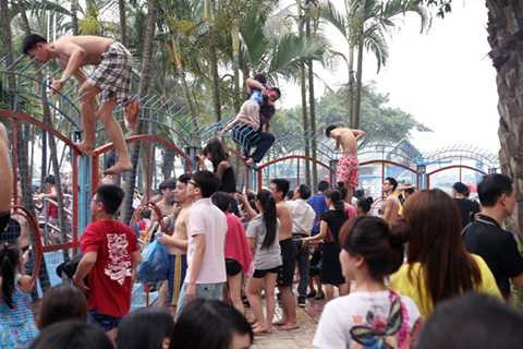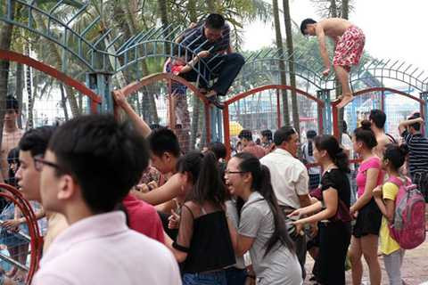 Do lượng người đến tắm đông trong khi khuôn viên không đáp ứng đủ khiến nhiều người đã bất chấp vượt rào sắt.