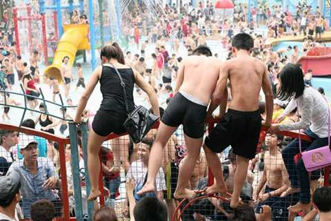 Do xảy ra quá tải, Công viên nước hồ Tây đã thông báo trên loa không tiếp nhận khách vào Công viên nước và chỉ tiếp nhận khách vào Công viên Mặt trời nhưng nhiều người vẫn bất chấp để trèo rào vào tắm.