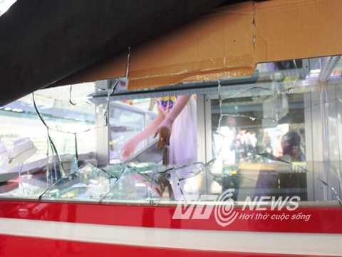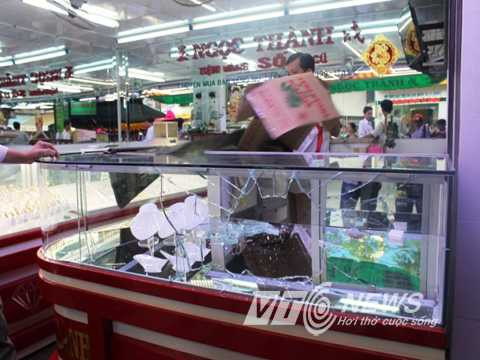 | Tên cướp đã dùng gạch đập vỡ tủ kính trưng bày vàng cướp đi một số nữ trang nhưng bị bắt ngay sau đó |