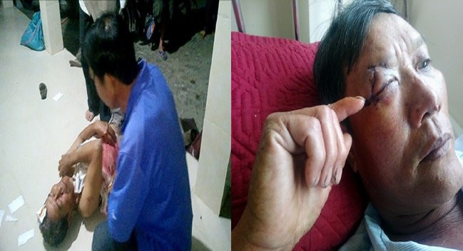 Ông Niệm có nguy cơ hỏng mắt vì bị những kẻ khai thác cát trộm trên sông bồ hành hung.