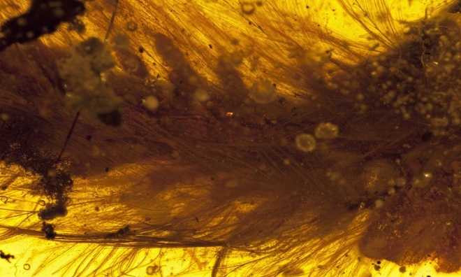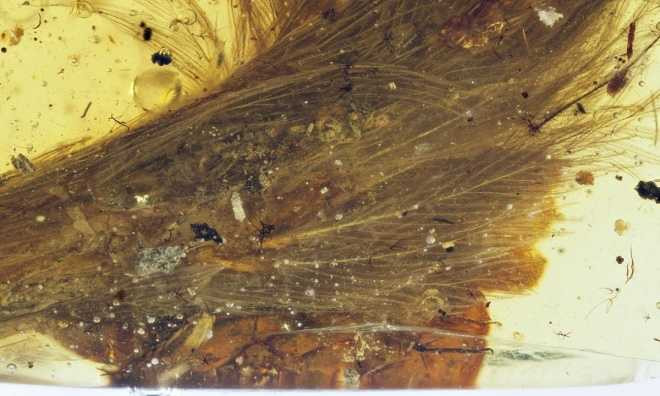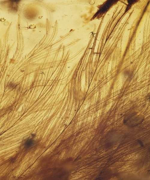 Khối hổ phách chỉ nhỏ bằng lòng bàn tay cung cấp cho các nhà khoa học cơ hội quan sát chi tiết cấu trúc lông, giúp họ tìm hiểu cách lông vũ tiến hóa.