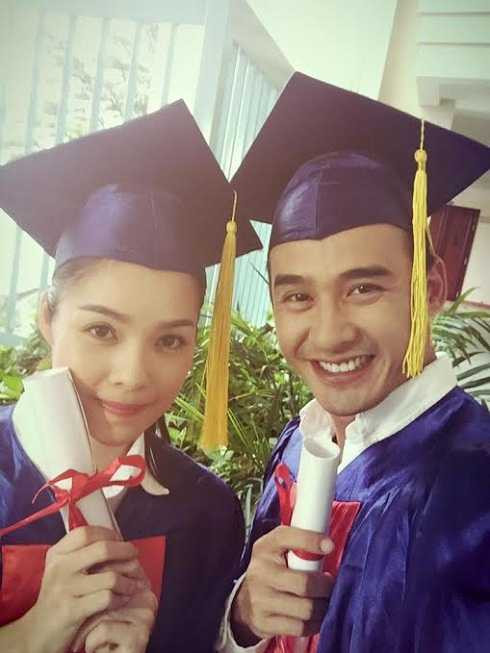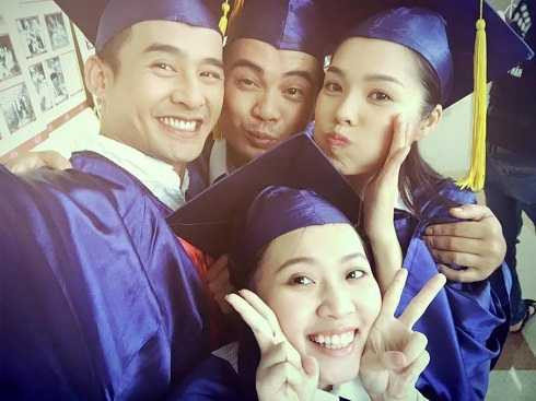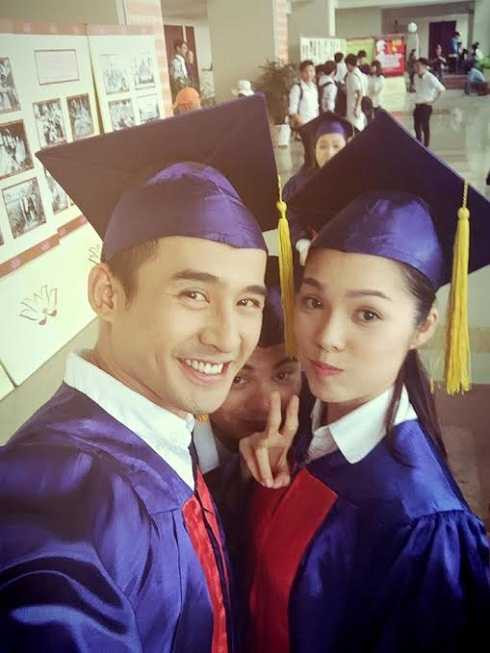 | Trong cảnh quay, cả hai diễn viên được trở về thời giảng đường đại học trong trang phục cử nhân xinh xắn. |