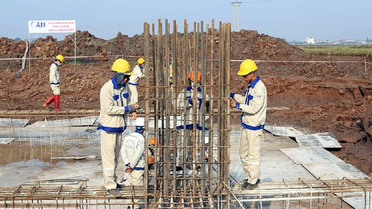Các đơn vị thi công vị trí 45 thuộc địa bàn huyện Nghĩa Hưng, Nam Định - Ảnh: EVN