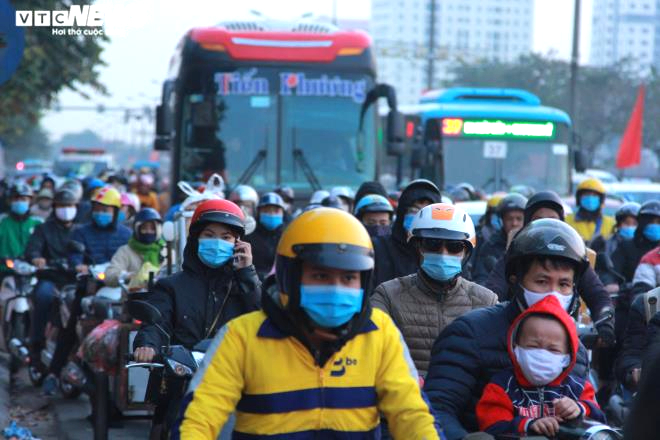 Tại các cửa ngõ TP Hà Nội, dòng người và ô tô chật cứng.