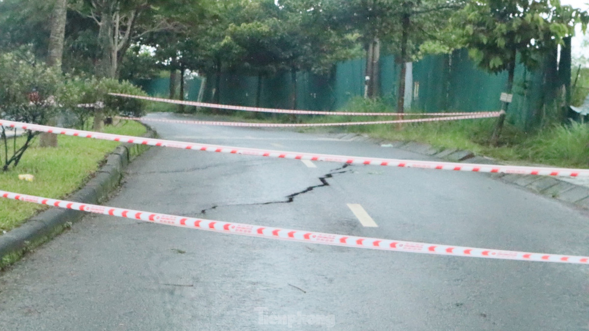 Đường Hồ Chí Minh bị sụt lún, vết nứt dài khoảng 5m, có nguy cơ sạt lở cao.
