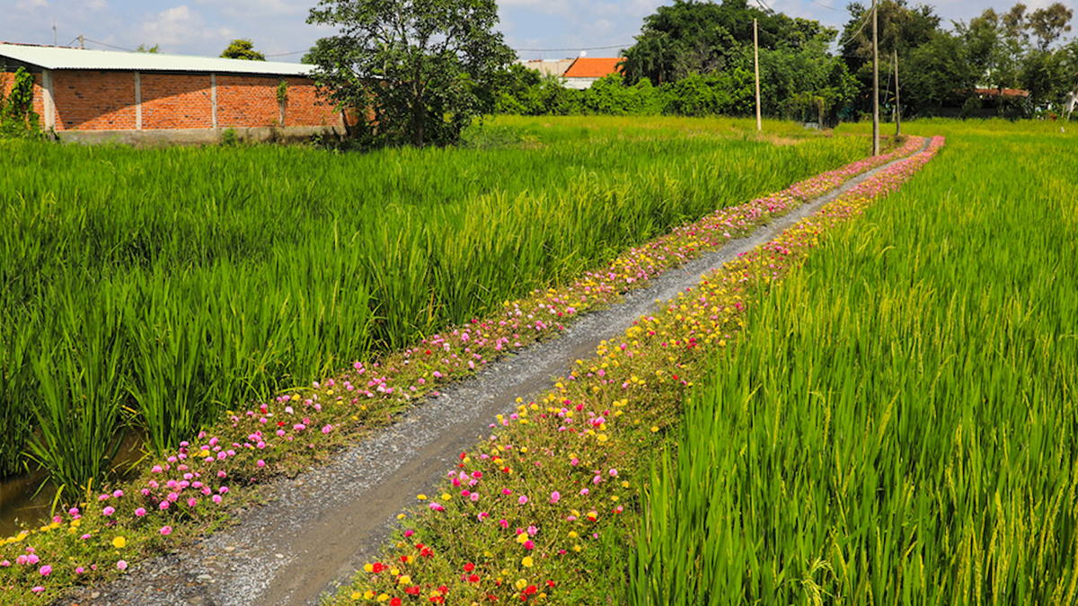 Đường hoa mười giờ dài hơn 100m giữa đồng lúa ở TP.HCM