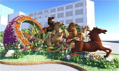 Mở đầu sẽ là đại cảnh "Dòng thời gian" với hình ảnh đàn ngựa tung vó, kéo theo cỗ xe hoa đồng hồ. Tiếp đó, hai bên đường lối vào đường hoa sẽ là tiểu cảnh "Khai hội mừng xuân" được cách điệu bằng hoa mai khổng lồ, như là một lời chúc phúc đến toàn bộ du khách trong mùa xuân mới.