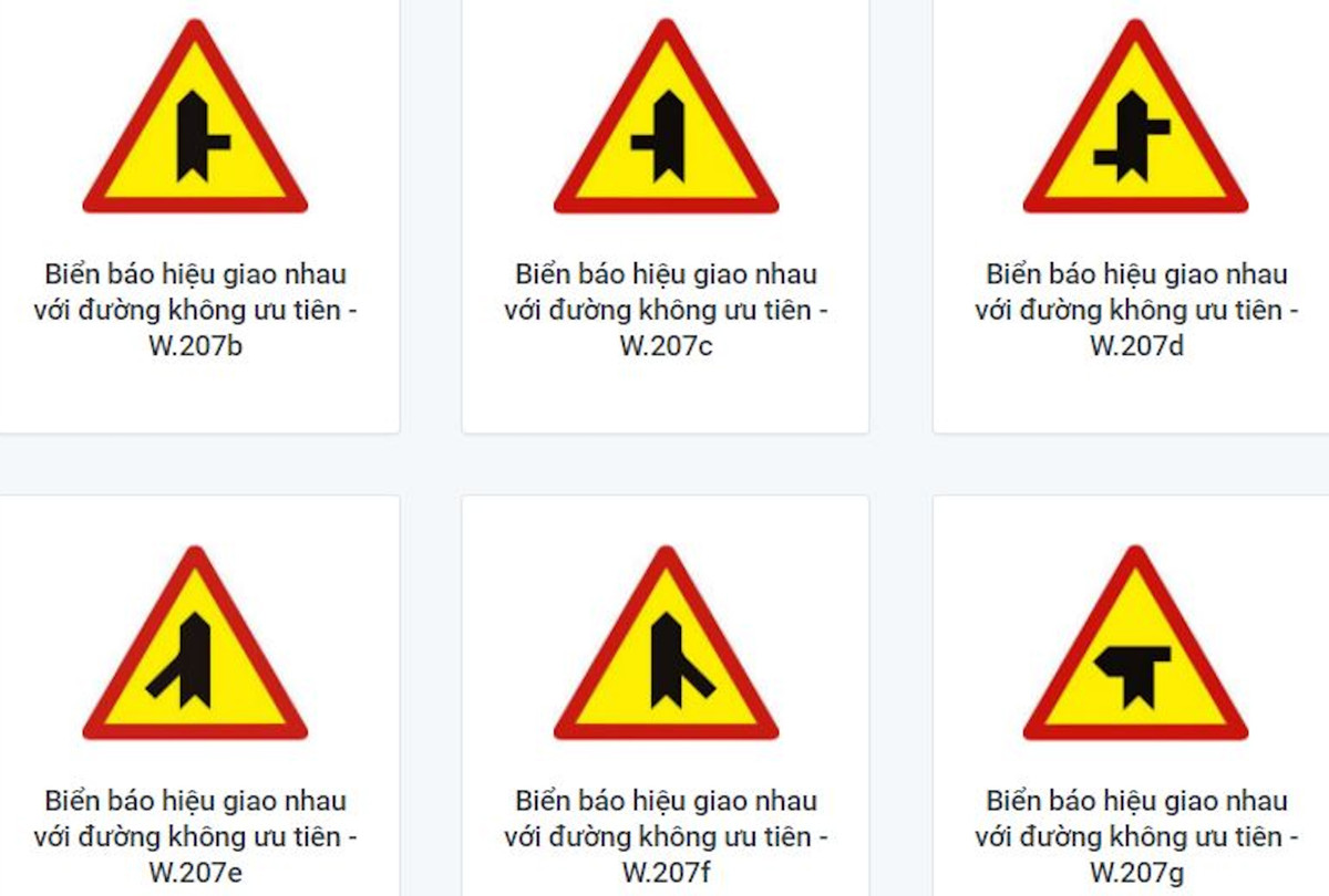 Phụ lục C về Ý nghĩa - sử dụng biển báo nguy hiểm và cảnh báo ban hành kèm theo Quy chuẩn kỹ thuật quốc gia QCVN 41:2019/BGTVT về Báo hiệu đường bộ cũng quy định, trên đường ưu tiên, để báo trước sắp đến nơi giao nhau với đường không ưu tiên, đặt biển số W.207 (a,b,c,d,e,f,g,h,i,k,l).