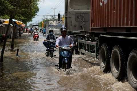Nhiều hộ dân sống dọc đường Trần Đại Nghĩa, đoạn qua P.Tân Tạo, Q.Bình Tân và xã Tân Kiên, H.Bình Chánh, TP.HCM phản ảnh gần 10 ngày nay họ phải sống trong tình trạng đường bị ngập.