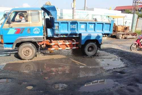 | Tình trạng xuống cấp là do lượng xe tải lưu thông quá nhiều trên tuyến đường Hương Lộ 80 |