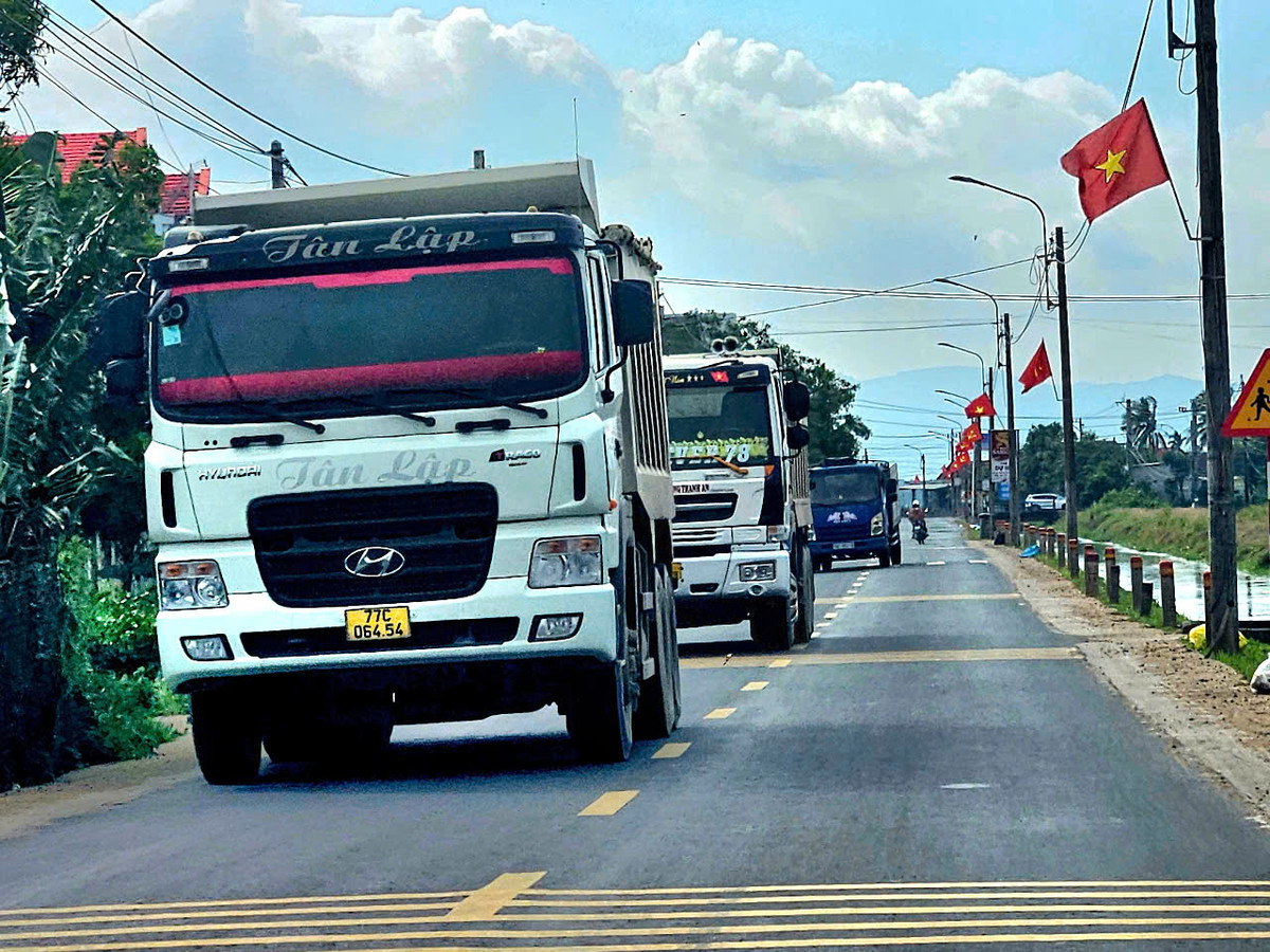 Trên trục đường có rất nhiều nhà máy, doanh nghiệp nên lượng xe tải đi lại khá lớn.