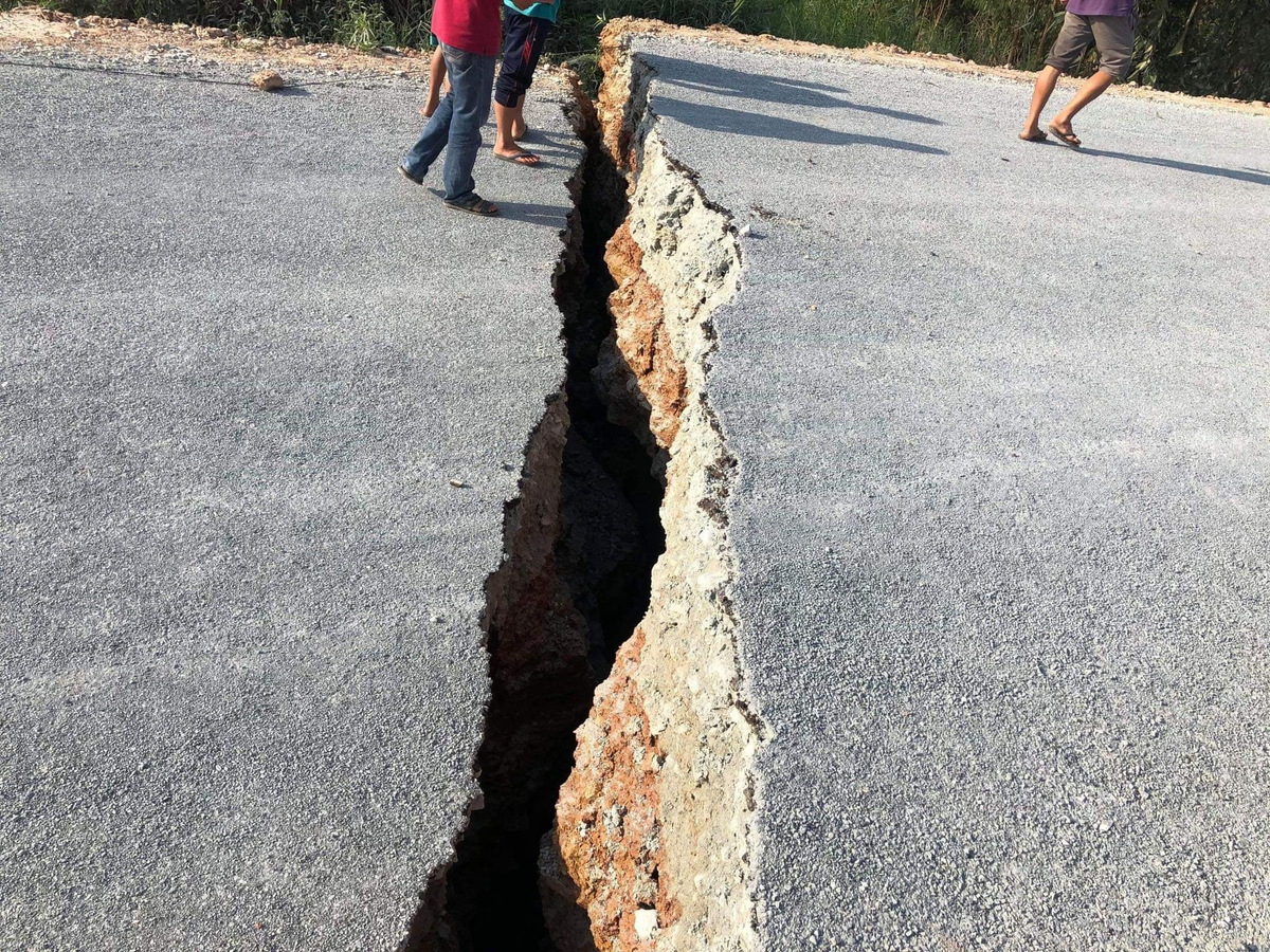 Đoạn đường bị nứt toạc khi đang trong giai đoạn hoàn thiện. (Ảnh: FB)