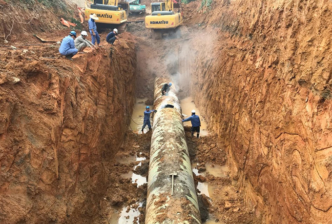 Đường ống nước sông Đà gặp sự cố vào tháng 5/2019. (Ảnh: Gia Chính)