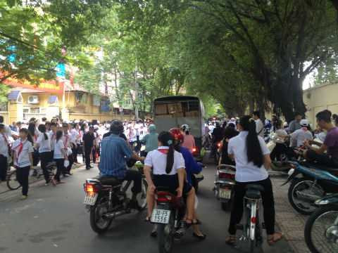 Tình trạng tắc nghẽn xảy ra vào khoảng thời gian từ 6h00 tới 8h00 và từ 9h30-10h30. Đây là lúc học sinh cùng phụ huynh tới trường khai giảng và ra về sau khi buổi lễ kết thúc.