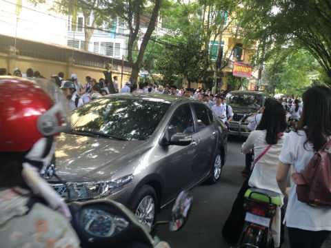 Nhiều phụ huynh học sinh đưa đón con đi dự lễ khai giảng đã dừng đỗ xe trên lòng lề đường khiến cho tình trạng ùn tắc tại các tuyến đường có trường học trở nên nghiêm trọng.