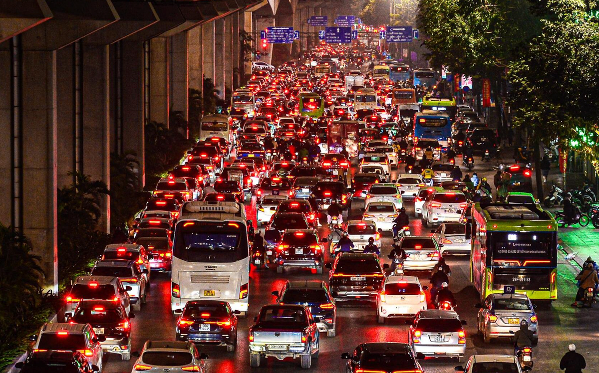 18h, hàng dài ô tô nối đuôi nhau, nhích từng chút trên đường Nguyễn Ngọc Vũ hướng về quận Thanh Xuân.