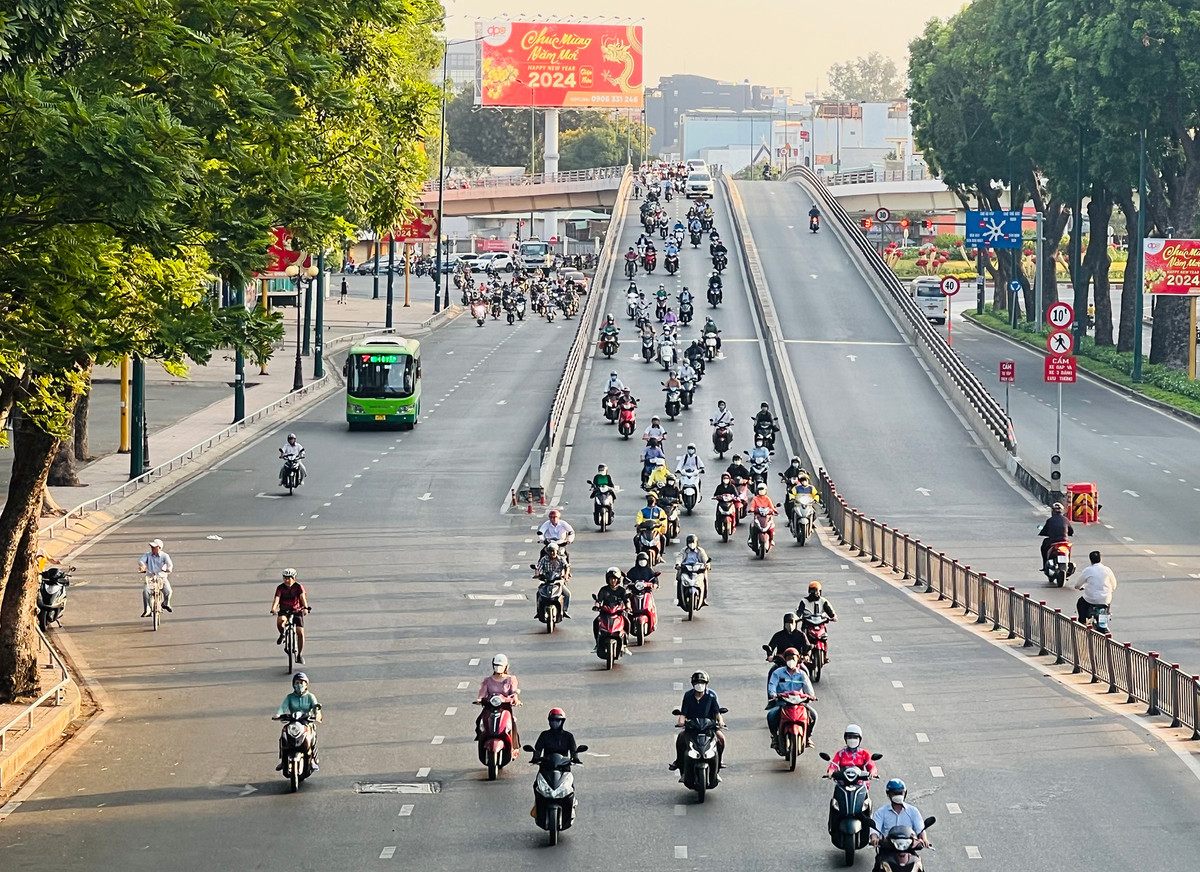 "Nếu ngày thường thì vào các giờ cao điểm, xe máy, ô tô chạy san sát nhau, phải nhích từng tí một. Giờ đường phố đã đông hơn mấy ngày nghỉ lễ, nhưng di chuyển vẫn khá dễ dàng", anh Thiện nói.