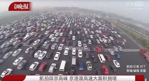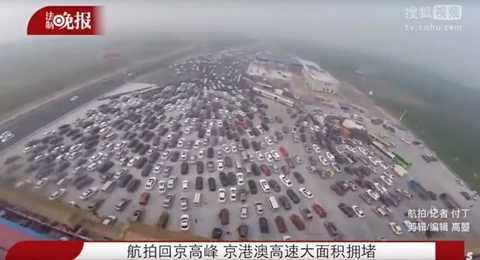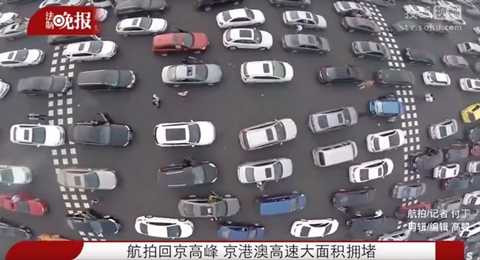 Đoạn video quay bằng flycam được đăng tải trên Nhân dân nhật báo điện tử của Trung Quốc ghi lại cảnh ùn tắc kinh hoàng nơi cửa ngõ vào thủ đô Bắc Kinh, vốn là điểm cuối của tuyến cao tốc nối Bắc Kinh - Hong Kong - Macau