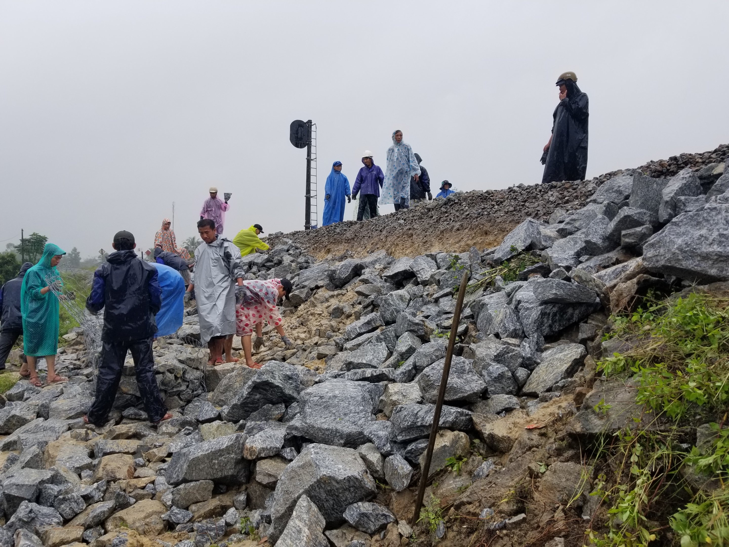 Trước đó, vào sáng 9/12, tại Đà Nẵng, một đoạn bờ kè đường sắt kéo dài gần 200m đã bị sạt lở nghiêm trọng.