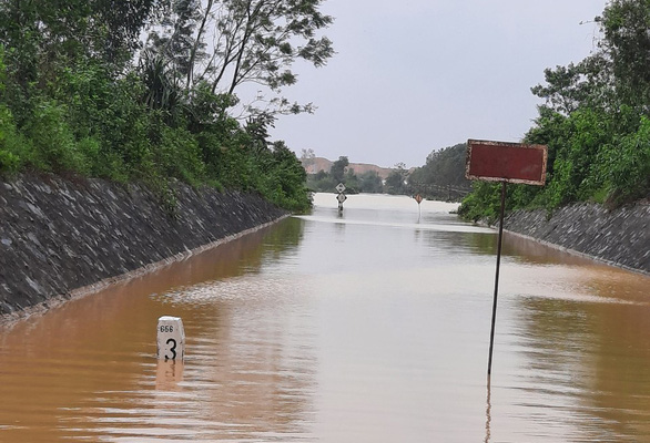 Nhiều nơi nước lũ ngập 17cm trên đỉnh ray và chảy xiết qua 1km đường sắt ở khu vực trên nên phải dừng chạy tàu.