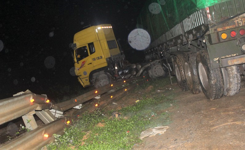 Cụ thể, chiếc xe tải đầu kéo do tài xế Nguyễn Văn Tâm (31 tuổi, trú Hải Phòng) lái theo hướng Hà Nội - Vinh khi đến gần cầu Cẩm Bào thì bất ngờ đâm gãy hơn 40 mét hàng rào hộ lan bên quốc lộ, sau đó nằm chắn ngang trên đường sắt.