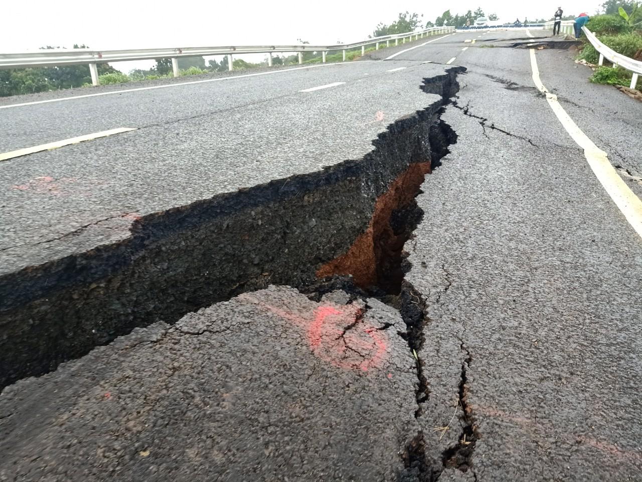 Nhiều điểm nứt tạo thành rãnh sâu cả mét trên đường tránh.