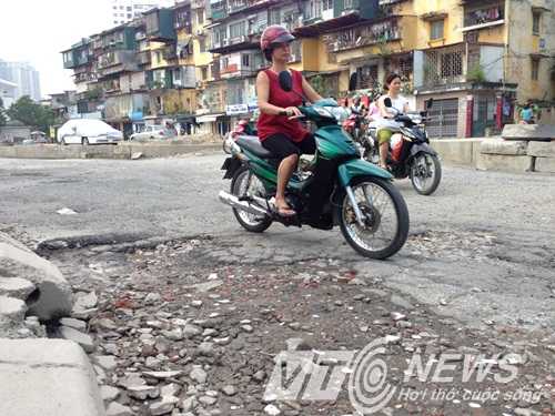| Phần lớn mặt đường là hố sâu |