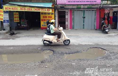 Theo ghi nhận của PV VTC News, đoạn đường này với chằng chịt ổ trâu, ổ gà, ngày mưa thì ngập nước, nắng thì bụi mù mịt, là nỗi khiếp đảm của người dân khi lưu thông.