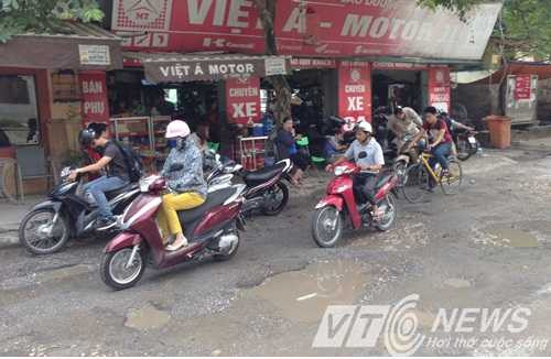 Nhiều người dân đi qua đây, do các ổ gà quá sâu, chệch tay lái nên phải dừng hẳn lại mới có thể tìm cho mình cách vượt qua cung đường này an toàn.