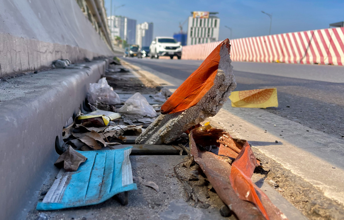 Rác thải sinh hoạt vứt bừa bãi dưới mặt đường, trên lan can.