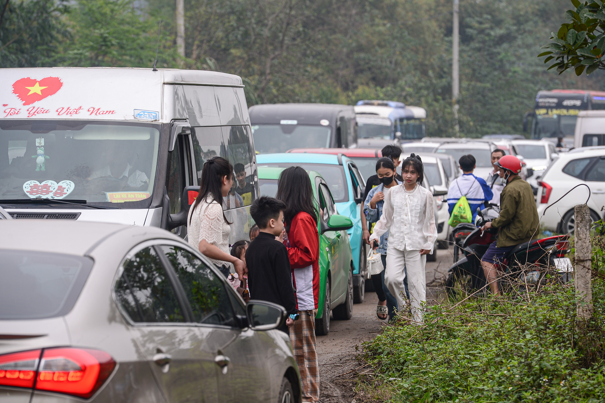 Trước tình trạng giao thông gần như tê liệt, hàng loạt du khách lựa chọn cách bỏ xe để đi bộ vào khu vực đền.