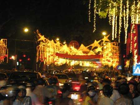 Dịp Đại lễ này, ai cũng muốn tranh thủ vào những con phố chính để chiêm ngưỡng tuyệt sắc của ánh đèn màu, chính vì vậy giao thông luôn là nỗi trăn trở của mọi người khi xuống phố. Tối 28/9, giao thông hầu như bị tê liệt ở các tuyến phố quanh khu vực quảng trường Ba Đình như Điện Biên Phủ, Hùng Vương…