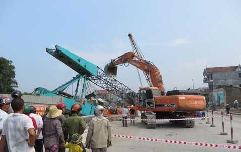 Thông tin ban đầu cho biết, chiếc cần cẩu đang tham gia thi công cầu Hoàng Mai bất ngờ bị đứt cáp. Đúng lúc này, anh Hùng điều khiển xe máy đi ngang qua thì bị cần cẩu rơi trúng.