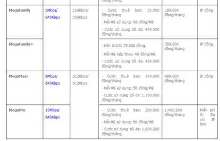 Một số gói cước ADSL của VNPT với tốc độ cam kết (cột 3), nhưng có người dùng phàn nàn tốc độ thực tế dưới cả mức này khi đứt cáp AAG.