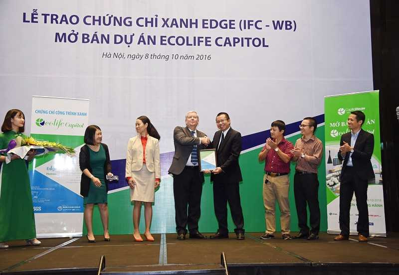 Ngày 8/10/2016 Mr Paul E. Christensen – Chuyên gia cao cấp của IFC trao chứng chỉ xanh EDGE dự án EcoLife Capitol cho chủ đầu tư Capital House