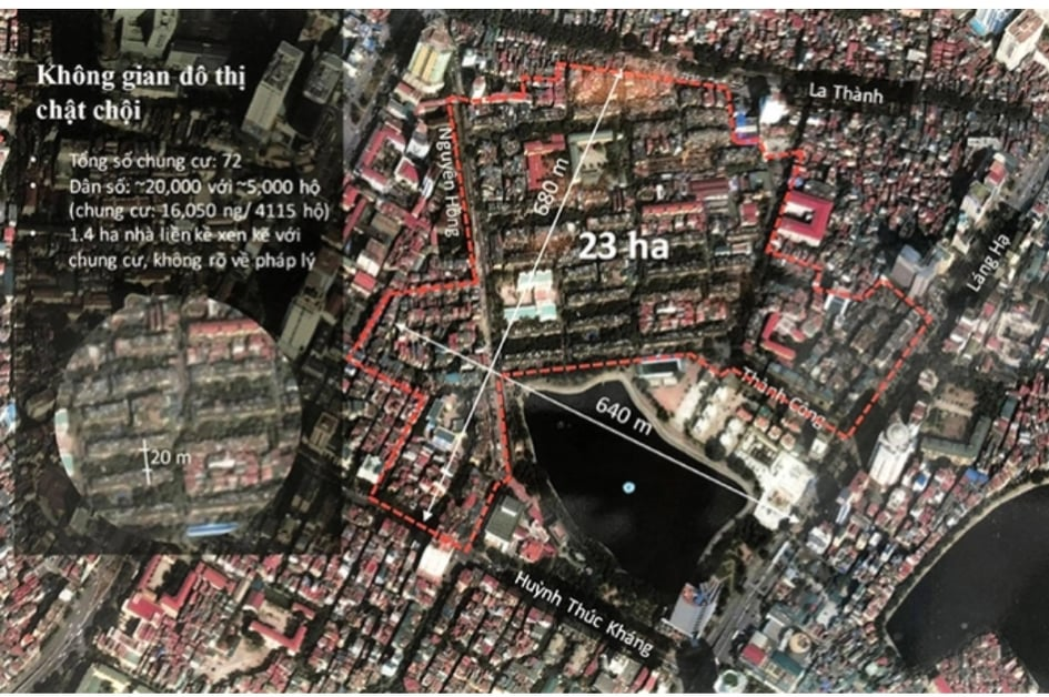 Theo đề xuất của Ecopark, vị trí khu vực nghiên cứu dự án cải tạo, xây dựng lại khu tập tập thể Thành Công có quy mô diện tích 23ha, trong đó gồm 72 chung cư và 1,2ha nhà liền kề xen kẽ với chung cư không rõ về pháp lý.