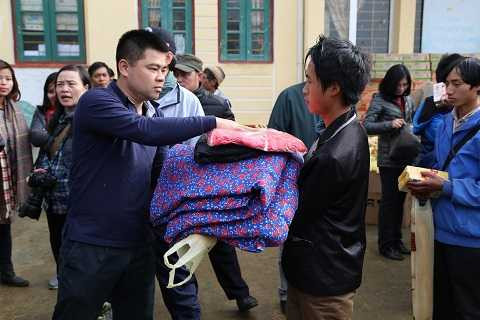 Nhiều cụ già dắt theo cháu mình tới nhận quà trong đôi chân trần sưng tấy vì rét. Không nói được tiếng Kinh, các cụ nắm chặt bàn tay nhỏ bé của những thanh niên tình nguyện Ecopark như thay lời cảm ơn từ tận trái tim.