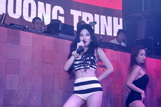 Bên cạnh đó, đáng cảnh báo hơn cả là những trang phục biểu diễn ca nhạc của Angela Phương Trinh.