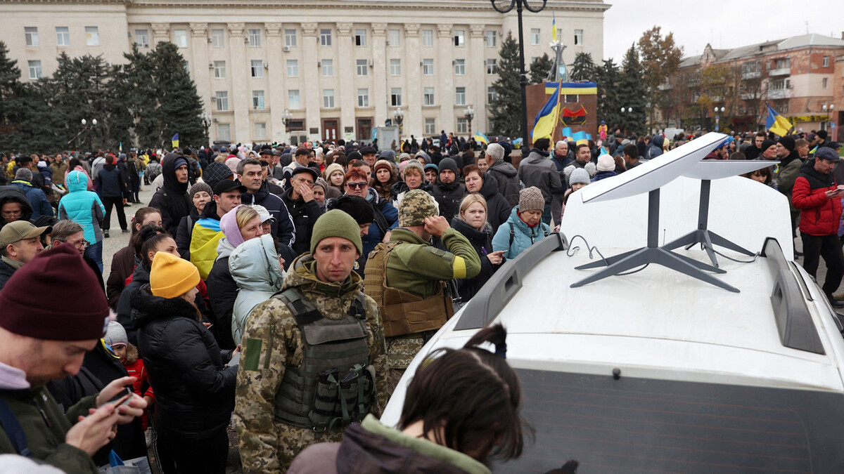 Một trạm internet vệ tinh Starlink công cộng ở Kherson, miền Nam Ukraine. (Ảnh: RT)