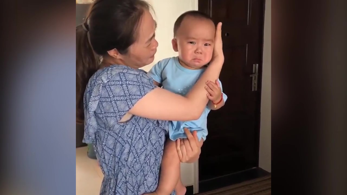 Nghe thấy tiếng gõ và vẻ mặt lo lắng xuýt xoa của bà, cậu bé tưởng mình bị cộc đầu nên mếu máo rồi bật khóc.