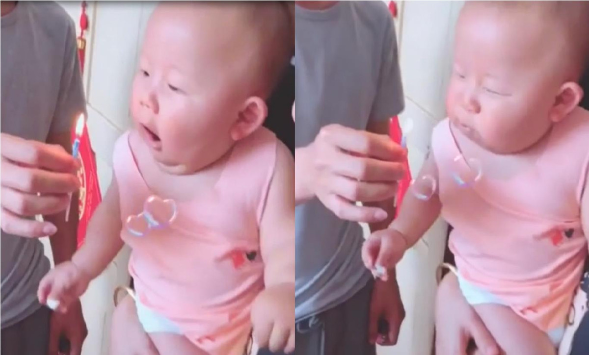 Dù cậu bé đã cố hết sức thổi đi thổi lại nhiều lần nhưng cây nến vẫn không chịu tắt khiến mọi người bật cười.