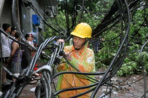 Một số hình ảnh công nhân EVN Hà Nội khẩn trương khắc phục sự cố trong cơn bão số 3: