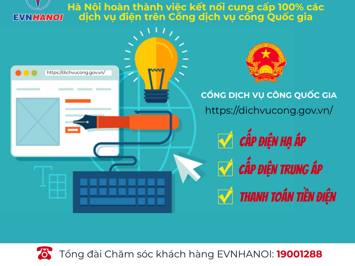 Ngoài ra, cũng từ thời điểm cuối năm 2019, ngoài trang web Chăm sóc khách hàng (http://cskh.evnhanoi.com.vn/) của EVNHANOI, khách hàng sử dụng điện có thể thực hiện yêu cầu cấp điện mới qua Cổng Dịch vụ công Quốc gia (http://dichvucong.gov.vn) để đăng ký cấp điện mới qua lưới hạ áp/trung áp.