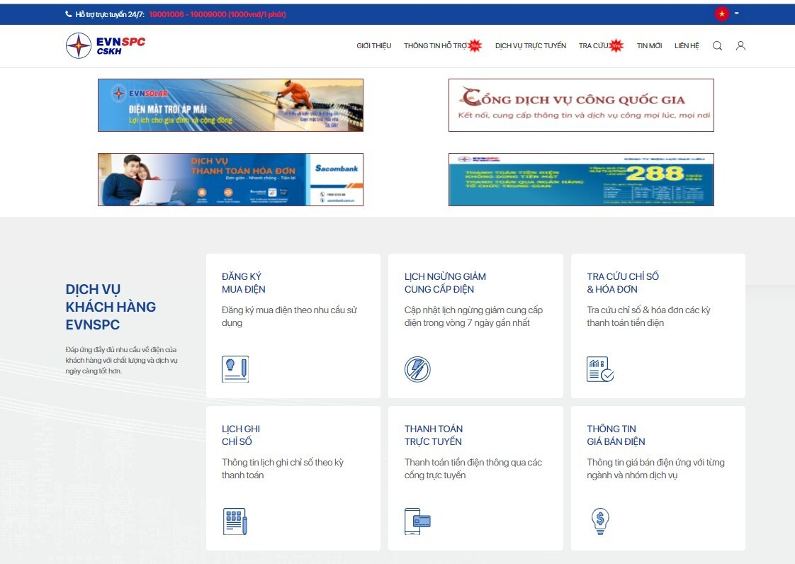 Khi thực hiện các giao dịch về điện theo hình thức trực tuyến, hoặc có bất cứ thắc mắc nào trong quá trình sử dụng điện, khách hàng có thể liên hệ ngay đến tổng đài CSKH 24/7 của EVNSPC (19001006 hoặc19009000) để được hướng dẫn, hỗ trợ giải quyết kịp thời, đại diện EVNSPC nhấn mạnh.
