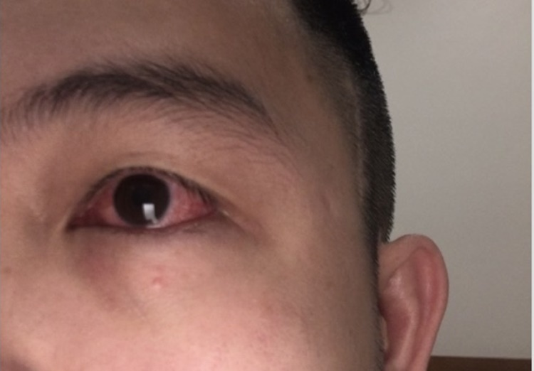 F0 bị đỏ mắt do Covid-19. Ảnh: Bác sĩ cung cấp